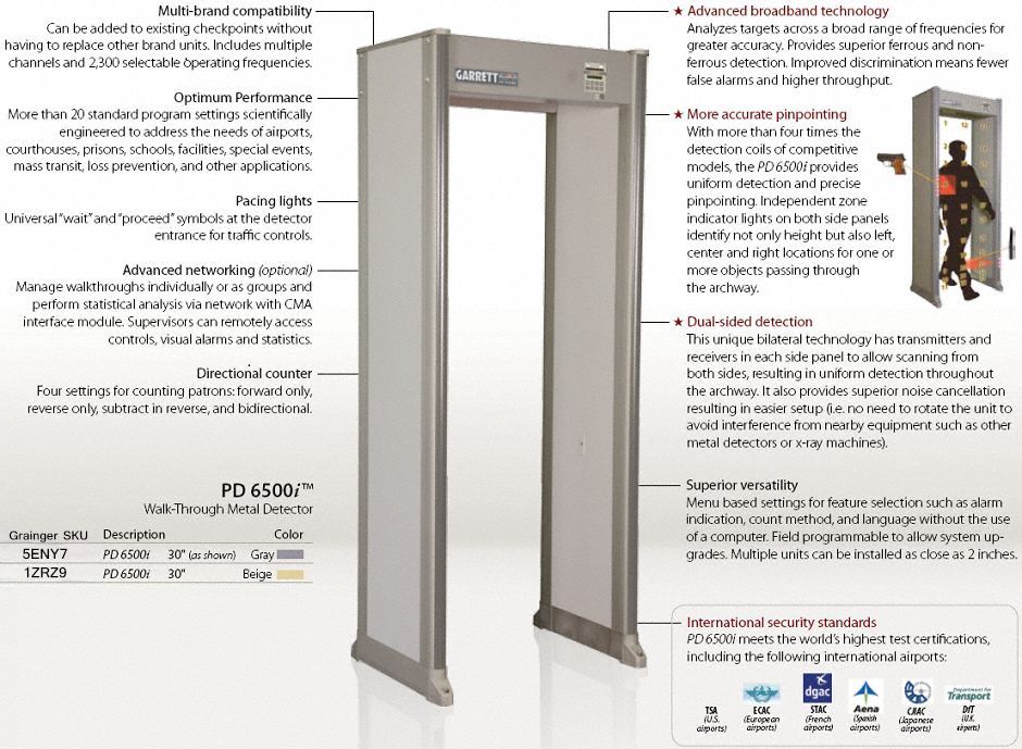 Airport Walk Through Detector Pd 6500i Garrett Metal Detectors